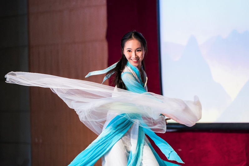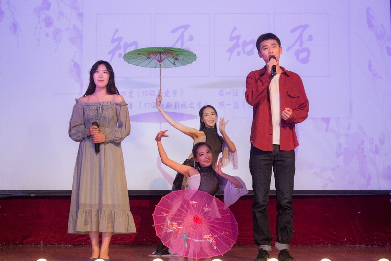 一曲《浣纱歌》在马铭洋同学翩跹的舞姿中苏醒,透过她手中的一袭白纱,观众似乎领略到了古典诗词穿越时空的魅力。在“翩若惊鸿,婉若游龙”的古典舞步的衬托下,王雨同学朗诵的《清明三首》更显灵动;而街舞社的表演在动感热舞中融入了中华戏曲元素,让人耳目一新。一曲歌伴舞《知否知否》又带大家领略了古典诗词唇齿留芳的美感。