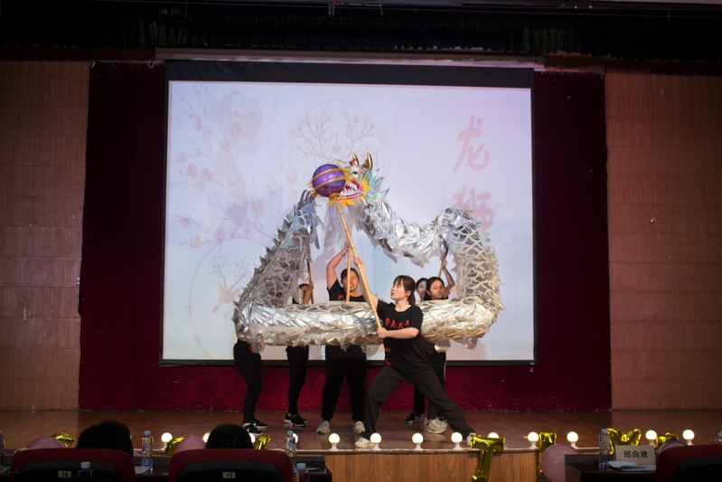晚会开场,在锣鼓声中,龙狮队闪亮登场。盘旋飞舞的银龙,五彩缤纷的绣球,热闹活泼,极具中国味道。舞狮结束后,邱向欢书记为本次闭幕式晚会倾情致辞。