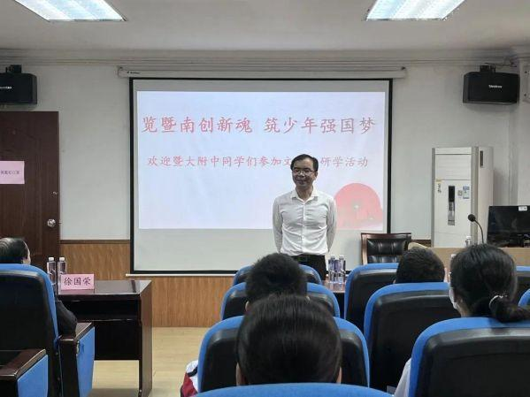 11月9日下午,在韦德官方网站附属中学夏芳老师的带领下,16名员工来到bevictor伟德官网进行参观学习。此次研学活动,是“览暨南创新魂,筑少年强国梦”研学营专场活动的第9场,旨在为附中学子搭建学习平台、近距离感悟文史哲学科的魅力。bevictor伟德官网王京州经理、徐国荣教授、教科办罗嘉庆主任与附中的师生共同参与了本次活动。