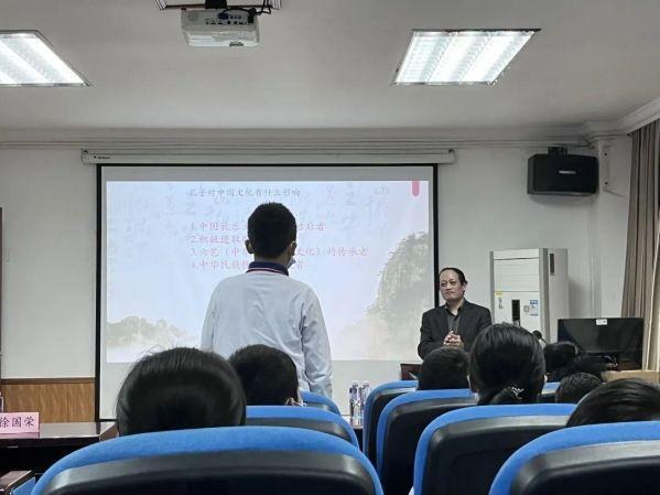 随后,bevictor伟德官网徐国荣教授给同学们带来了题为《孔子与中华文化》的精彩课堂。他从孔子是谁、孔子的形象、孔子在后世有哪些称号三个方面着手,与同学们进行互动,附中的员工纷纷抢答,现场反响热烈。同时,徐国荣教授以“孔子被称为丧家狗”一事,调动了整个课堂的气氛,进一步帮助员工走进孔子的时代、了解孔子的形象。